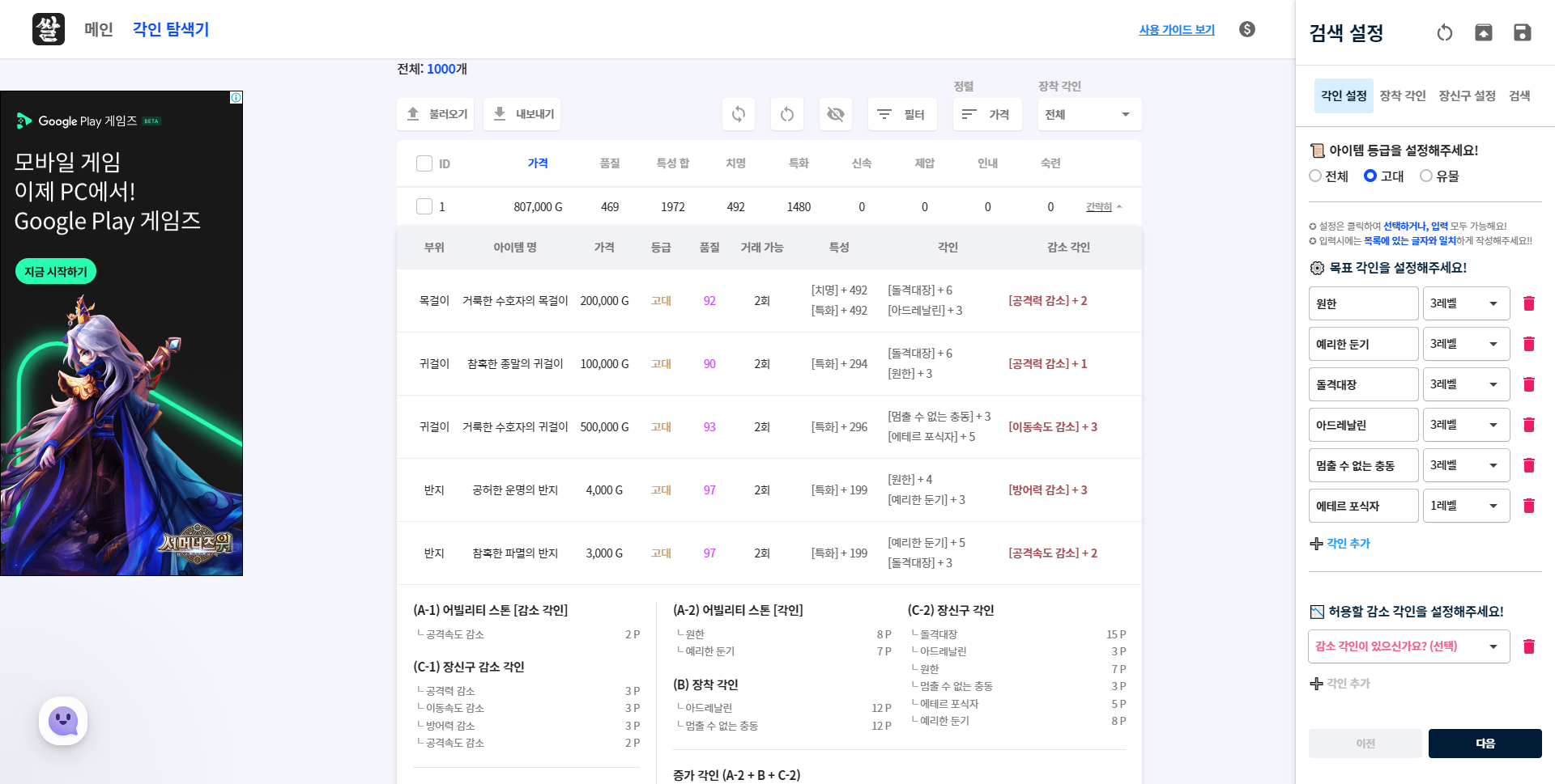 로스트아크 인벤 : [06.21 수정]:: 새로운 장신구 각인 세팅(탐색) 서비스 쌀로아를 소개합니다! -