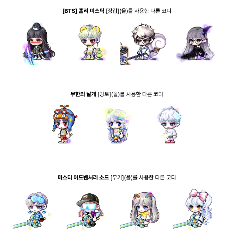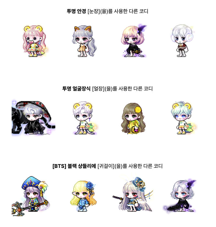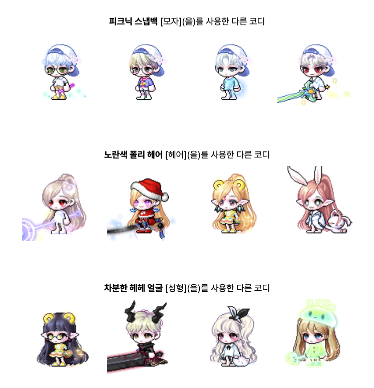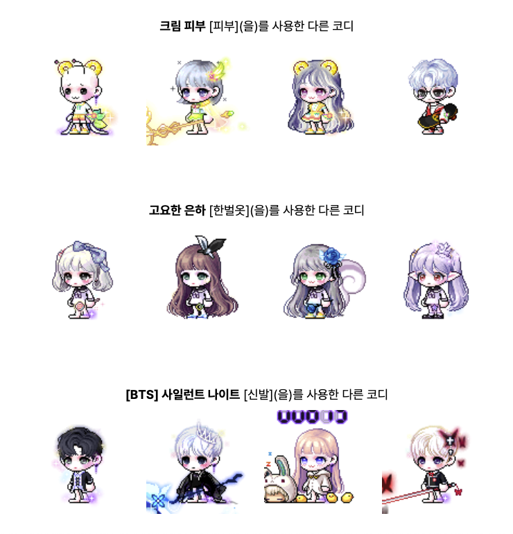 메이플스토리의 다양한 유저들의 코디를 확인하고 내 코디를 공유해보세요! 가장 많이 사용한 코디부터 같은 부위를 사용한 다른 코디까지 지금 바로 만나 보실수 있어요!