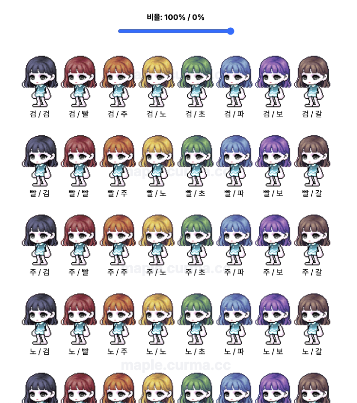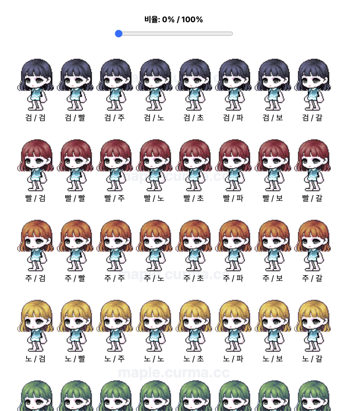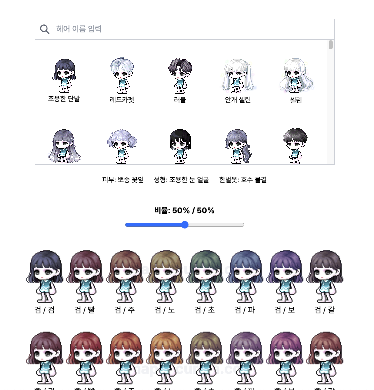 메이플지지는 믹염에서 헤어 종류가 너무 적거나, 시뮬레이터 서비스들은 비율이 즉각 반영 안되는 이슈들이 있어서