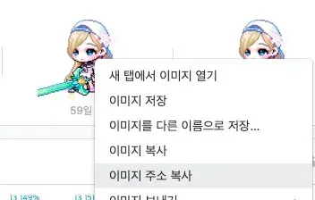 메이플 지지에서 정보를 추출하고 싶은 컬렉션의 이미지에 마우스 우클릭 후 `이미지 주소 복사` 를 클릭합니다.