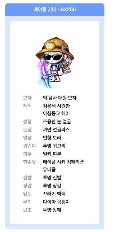 메이플 커마는 메이플스토리 캐릭터의 코디 정보를 분석 및 공유하는 써드파티 서비스입니다.