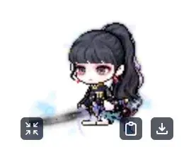 코디 분석 결과에서 캐릭터 이미지에 마우스를 올려보시면 위 이미지 와 같이 3가지의 아이콘 버튼이 보여지게됩니다.