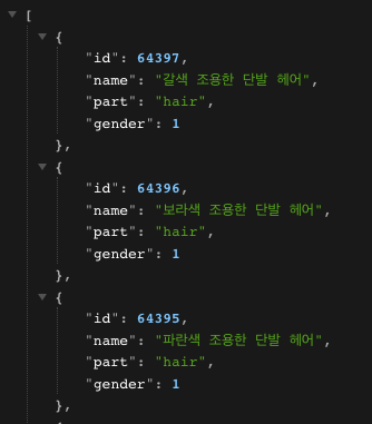 hairs 목록에 존재하는 헤어 이미지는 위 주소처럼 요청하실 수 있습니다.