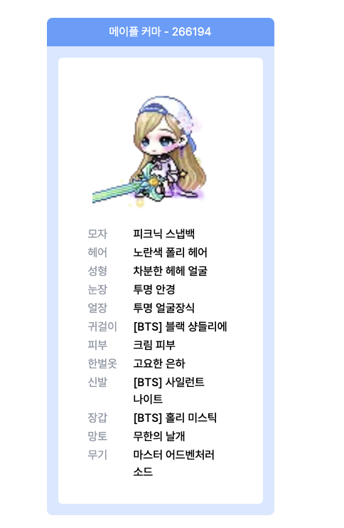 믹염을 제외한 이미지의 경우는 넥슨사의 메이플 아바타 CDN으로부터 이미지를 획득하게 됩니다.