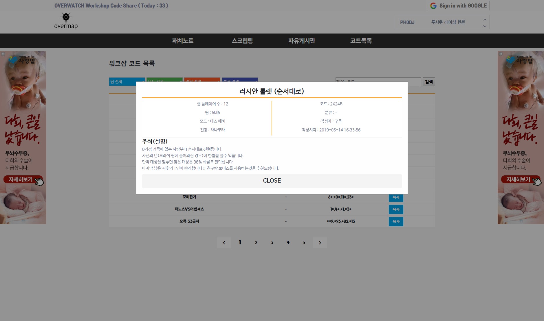 | [오버맵] 오버워치 워크샵 유즈맵 코드 사이트 긴급패치 (0) | 2019.05.09 |