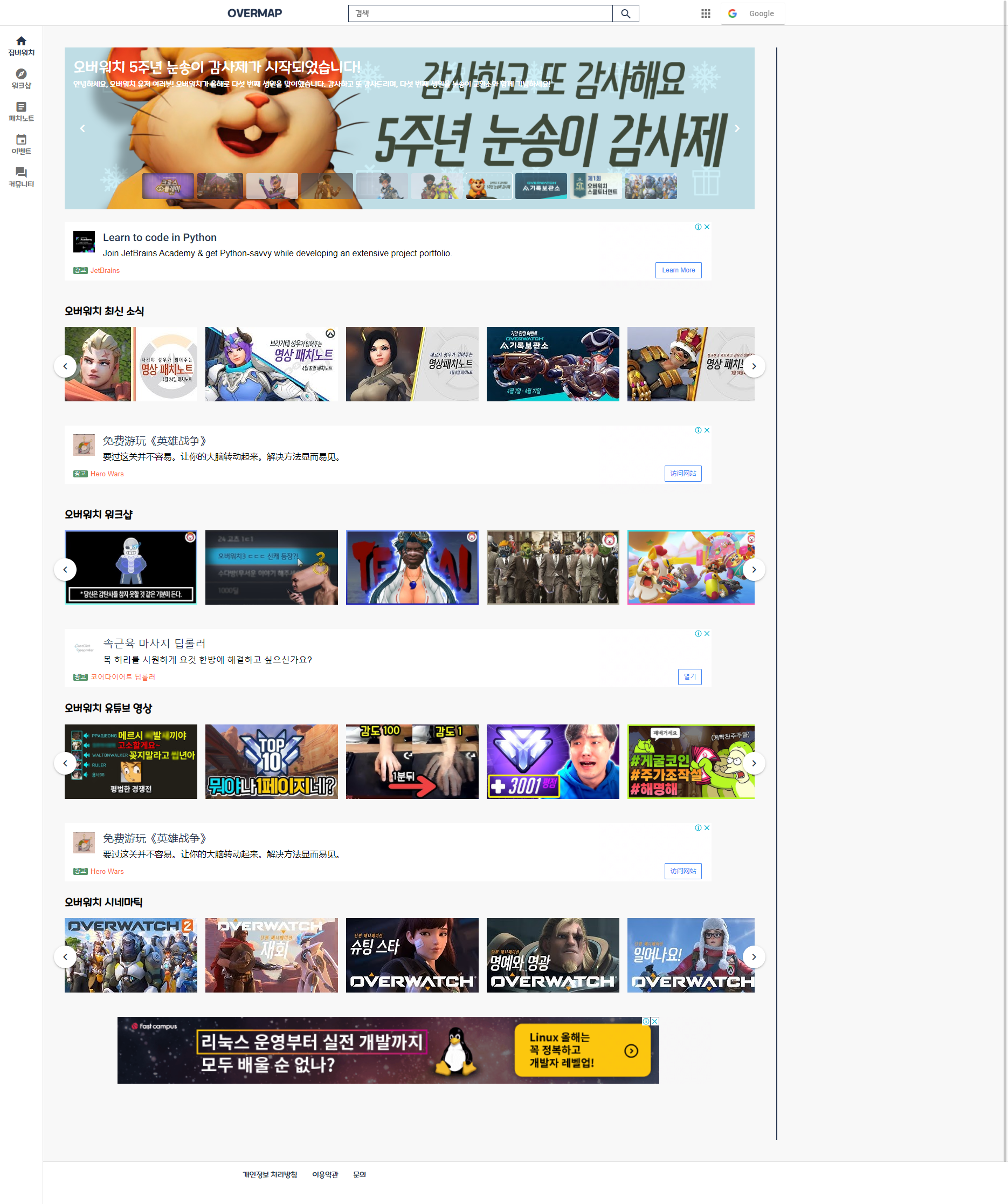 콘텐츠의 표기를 개선하고 오버워치의 특색과 오버워치를 주 컨텐츠로 영상을 만들어주시는 크리에이터 분들의 최신 영상이 반영될 수 있도록 적용하였습니다.