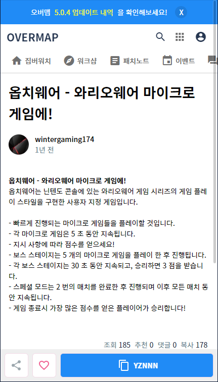 오버워치 워크샵 커뮤니티 오버맵 5.0.5 업데이트가 2021.08.10(화)에 진행되었습니다.
