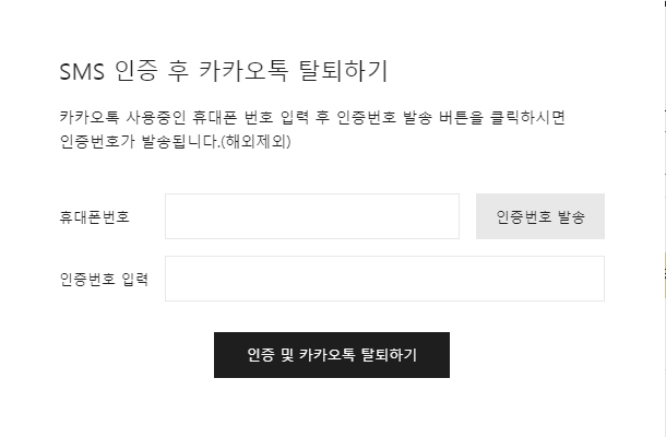 여기서 SMS 인증을 하고 '인증 및 카카오톡 탈퇴하기'를 하면 즉시 탈퇴처리가 가능합니다.