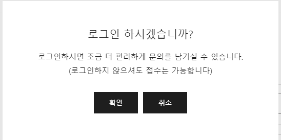 하단에 보시면 이렇게 문의하기 버튼이 있는데, 해당 버튼을 클릭합니다.
