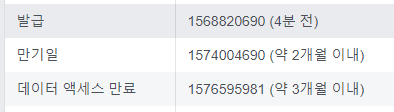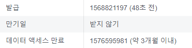 여기서 나온 액세스토큰이 드디어 만료가 없는 영구적인 액세스 토큰입니다.