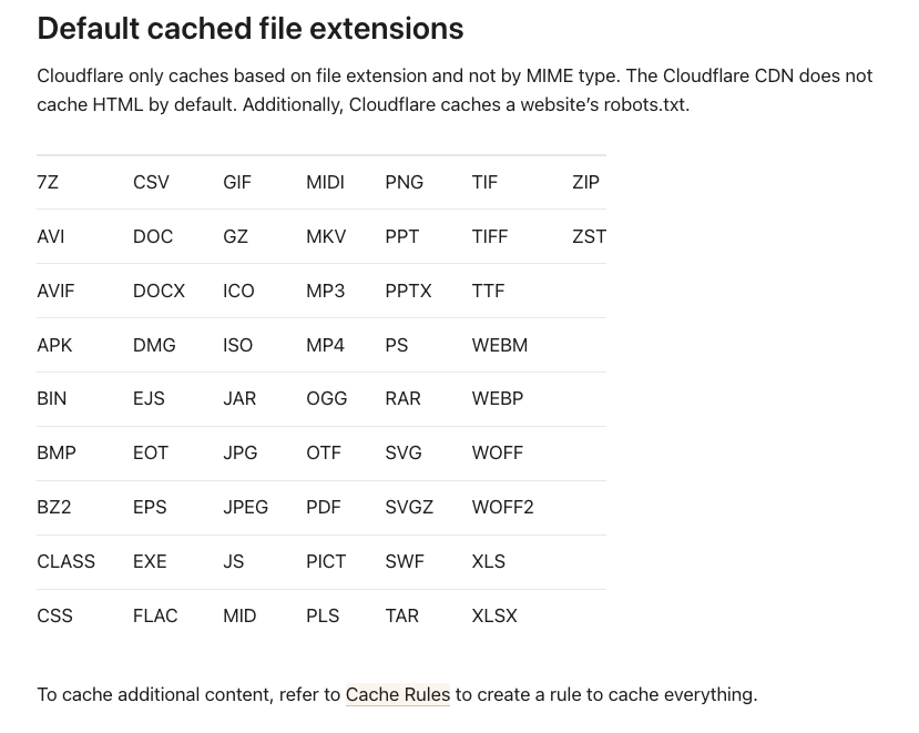 위 이미지 및 링크에 명시된 확장자의 경우 별도의 설정 없이도 기본적으로 캐싱에 반드시 적중합니다.