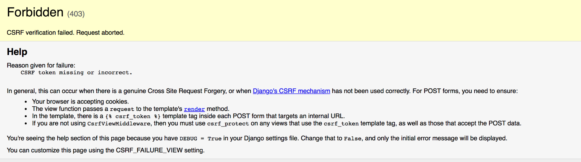 https://docs.djangoproject.com/en/2.2/ref/csrf/