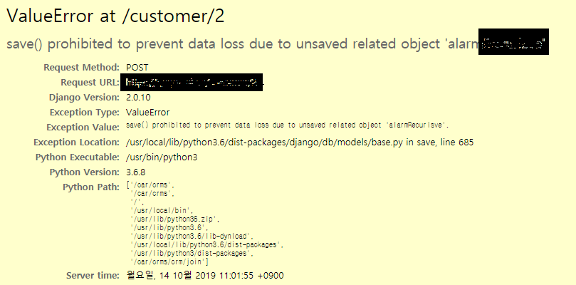 ValueError: save() prohibited to prevent data loss due to unsaved related object 'alarm'.
