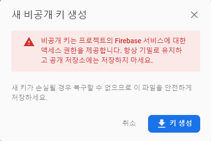 Firebase 비공개 키 획득하기