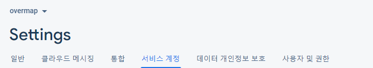 프로젝트 설정에서 서비스 계정 탭으로 이동하시면