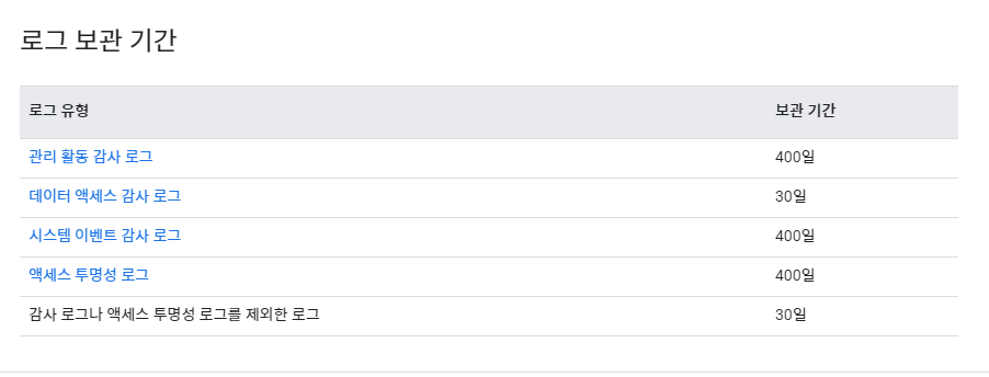 로그는 구글의 로깅 할당량 기준을 따릅니다.