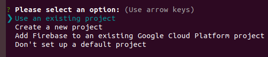우린 이미 Firebase 프로젝트가 존재하기 때문에 Use an existing project에서 엔터를 입력합니다.