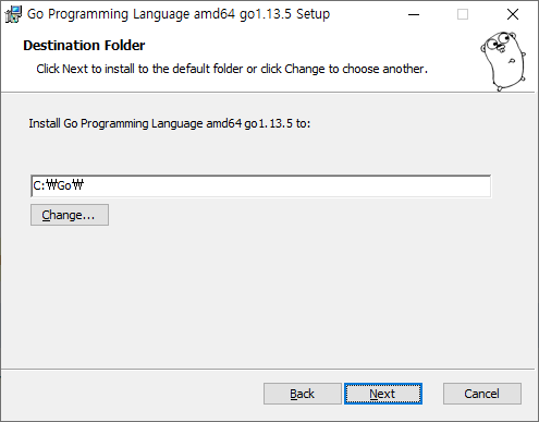 Go언어를 설치할 때처럼 설치 위치를 설정합니다.