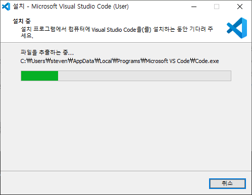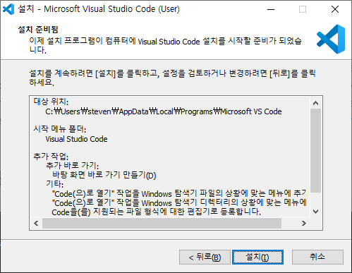 생성하지 않겠다면, "시작 메뉴 폴더를 만들지 않음(D)"을 체크 후 다음을 눌러주세요!