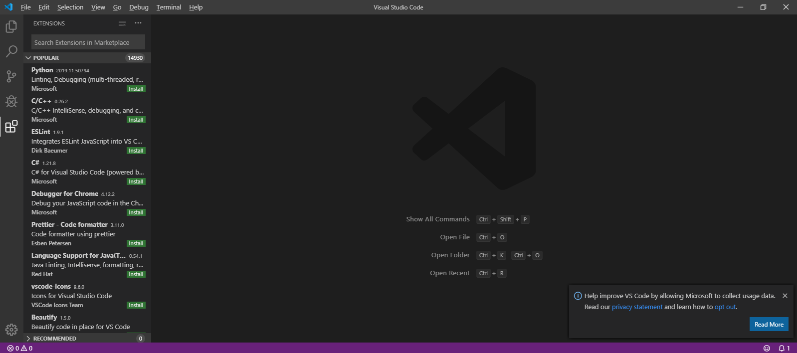 확장플러그인을 클릭 시 EXTENSIONS라는 확장 메뉴가 생성되며 인기순으로 막 보여줍니다.