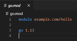 example.com/hello 라는 모듈이며 해당 패키지의 dependency(의존성)이 명시되어 있습니다.