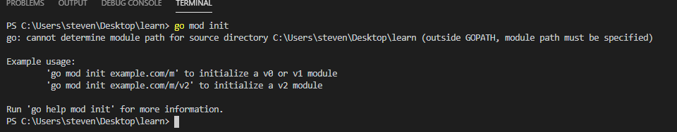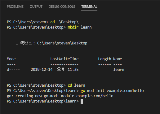 learn 이라는 폴더안에서 hello 패키지를 초기화 했습니다!