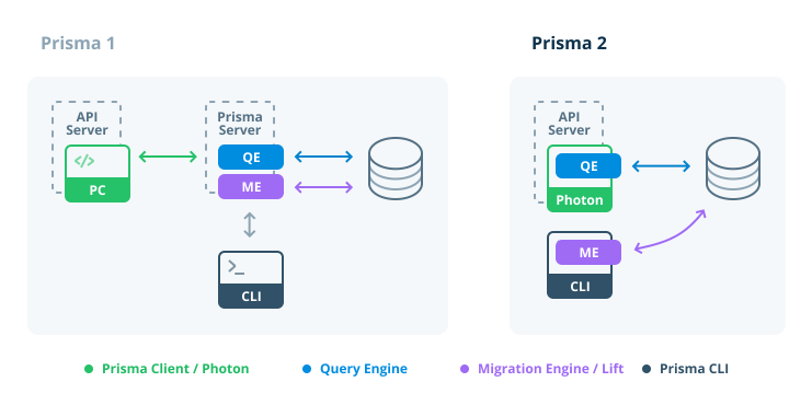 Prisma2에서는 두 서버가 하나로 통합되며,