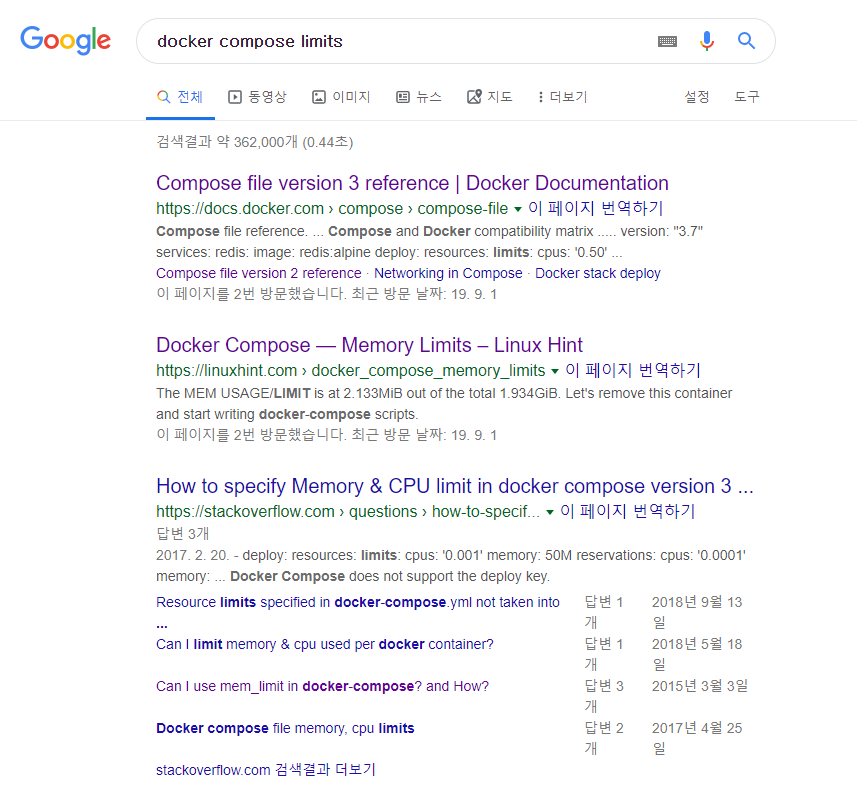 | docker compose memory limit / 도커 컴포즈 메모리 제한 (0) | 2019.09.03 |