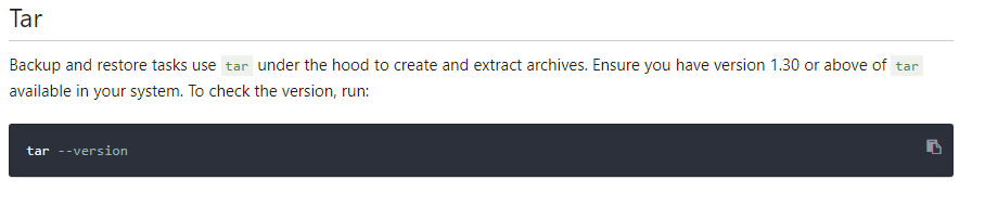 document를 참조하니 tar가 1.3.0 이상이어야 한다네요...
