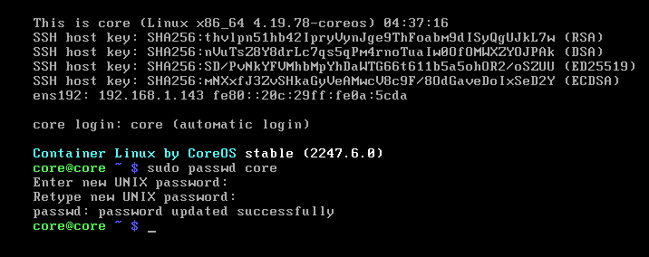 This article provides information about the installation, basic configuration of CoreOS ova on VMware ESXi, Workstation or Fusion and take CoreOS 557 release as